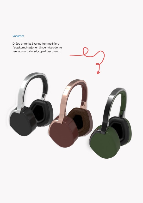 Resultatet ble DRÅPE, et fullstendig reparerbart headset, inspirert av formen til vanndråper på en glatt overflate. Komponentene er designet for å gjøre det lett for bruker å demontere headsetet, og således komme til for å reparere eller erstatte eventuelle defekte deler i fremtiden. Det muliggjør også fremtidig oppgradering av deler, som igjen øker levetiden til headsetet.