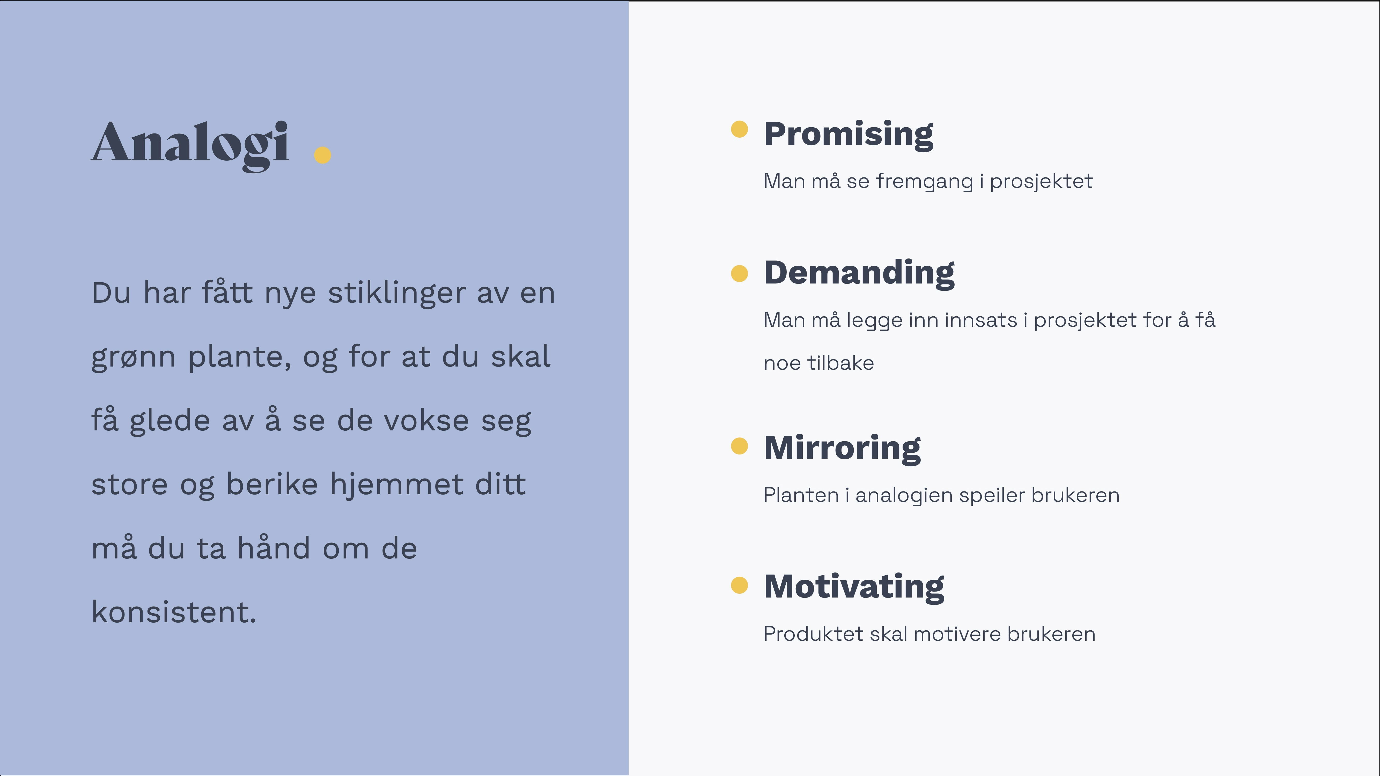 Analogi for tjenesten. Hvordan skal brukeren oppleve den, og hvilke følelser vil vi vekke?