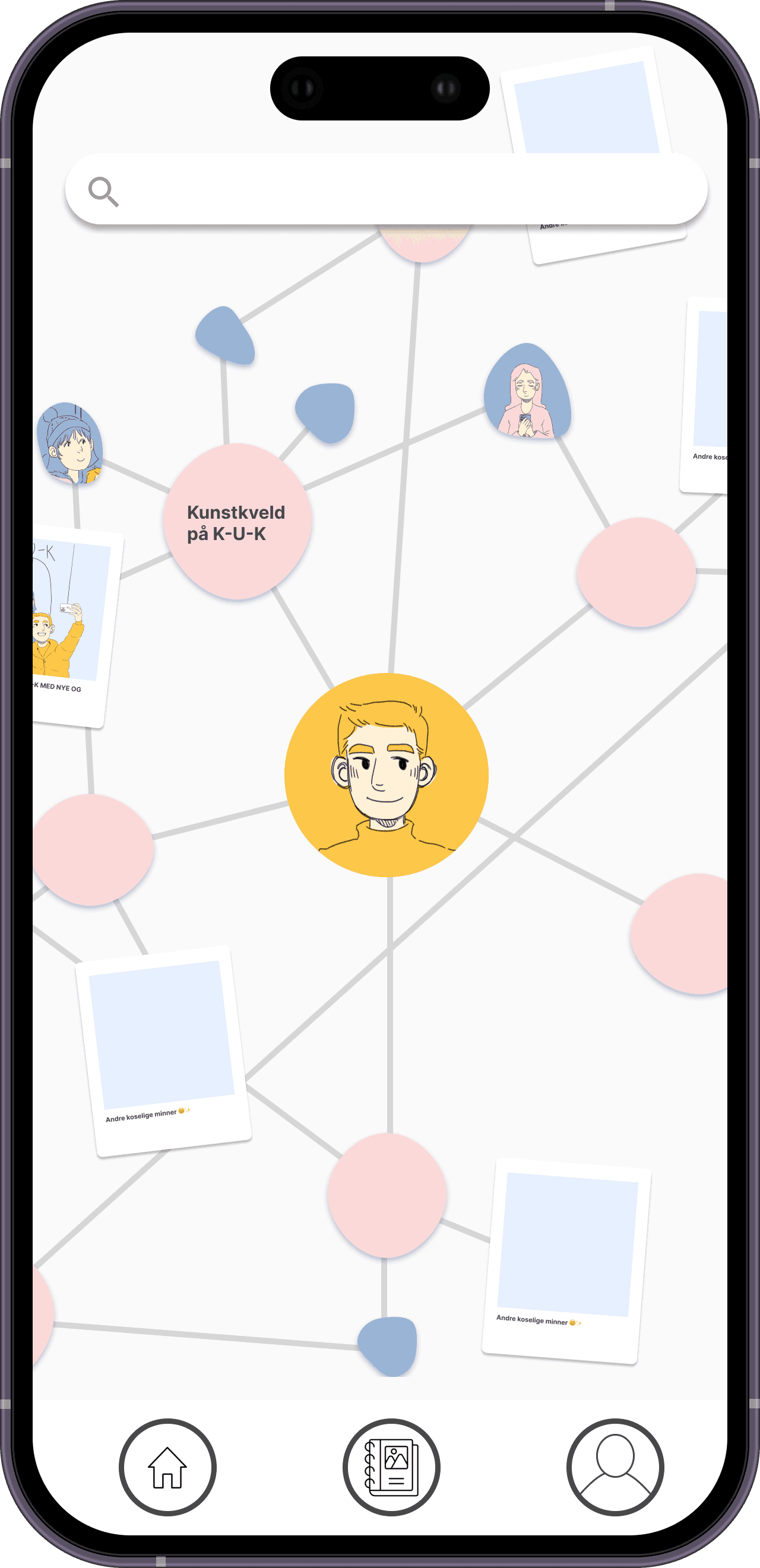 Prototyping i Figma og digitale mockups av tjenesten. Jeg tok ansvar for å gjøre prototypen vår interagerbar gjennom smart-animations, og satte opp strukturen til appen.